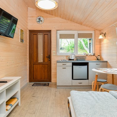 Atskiras įėjimas, terasa pasisėdėjimui, virtuvėlė, dušo patalpa, TV, WIFI.